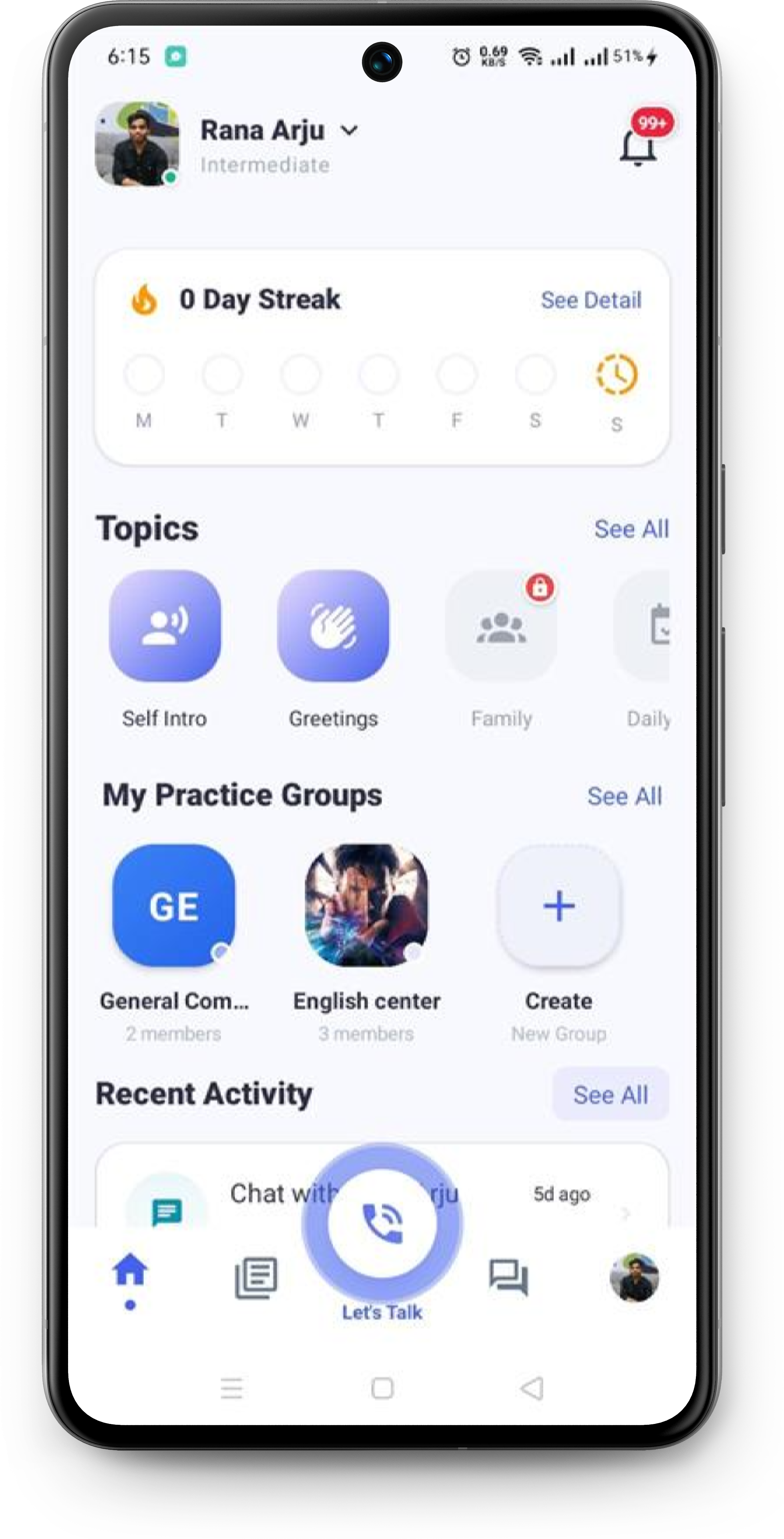 Watch how our app transforms language learning through interactive conversations, real-time feedback, and social connections.